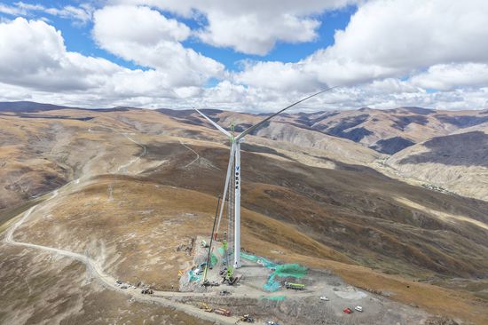 10月4日,華能在藏首個風力發電項目——華能山南乃東才朋80兆瓦風儲項目完成首臺風機吊裝。